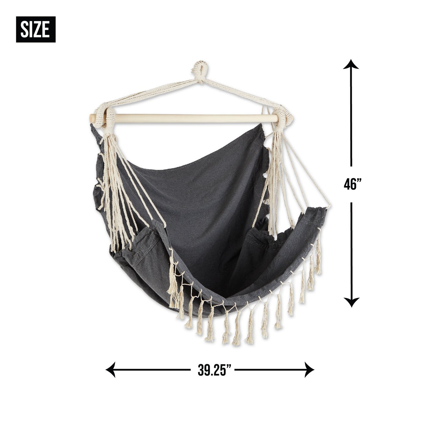 • Hammock chair weighs 3.3 lbs and measures 39.25x46 inches.
